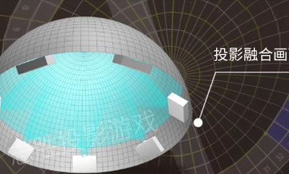 熒幕為半球形,由多臺(tái)投影設(shè)備投射的畫面無(wú)縫融合組成。